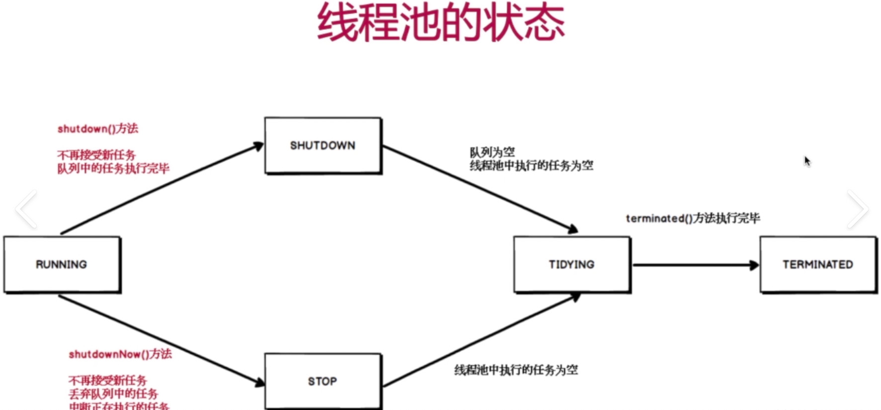 **线程池的生命周期**:线程池有不同的状态,如`RUNNING`、`SHUTDOWN`、`STOP`等,表示线程池是否正在工作或是否已经关闭。