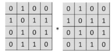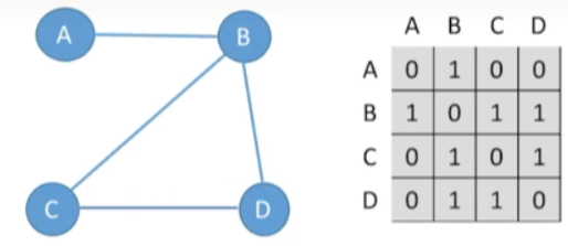 - 用一个矩阵存储两个元素之间是否存在直接相连的边,如果有,则为1,没有则为0