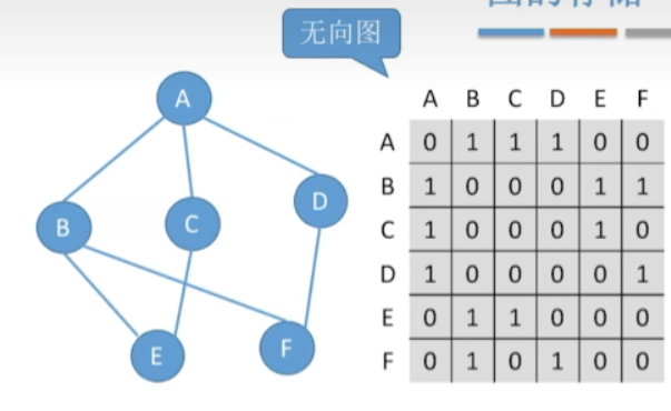 - 例如A到D之间有直接相连的一条边,则在A和D对应的方框中填1,A到F之间没有直接相连的边,则在A和F的队友方框填0