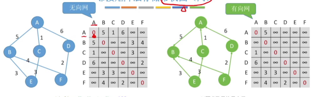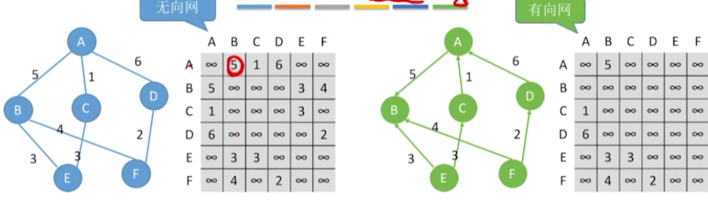 - 而如果两个顶点之间不存在边的话,那么我们可以用这种无穷来表示它们之间不存在相连的边