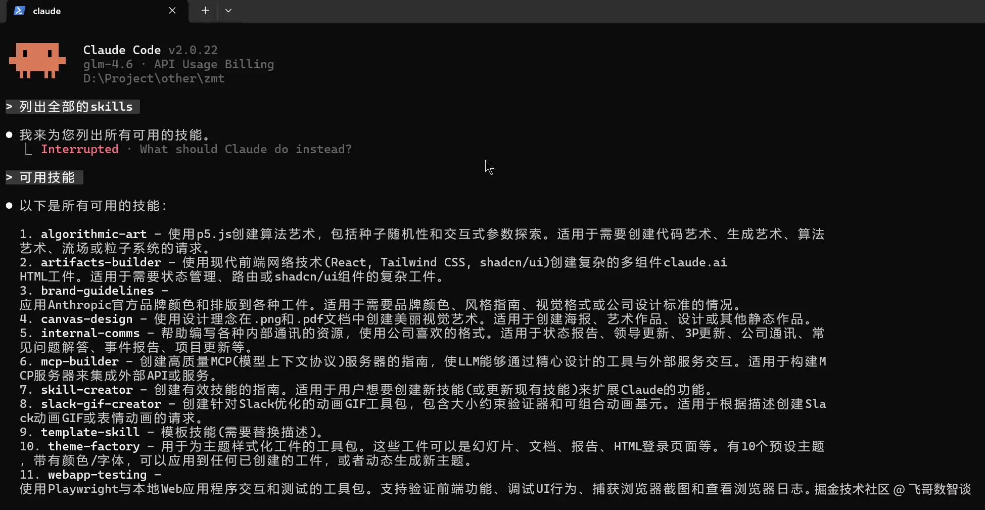 并且,全程使用的都是国内网络+国内模型 GLM-4.6 ,这意味着你即使是个小白,也可以尽情体验各种 Skills