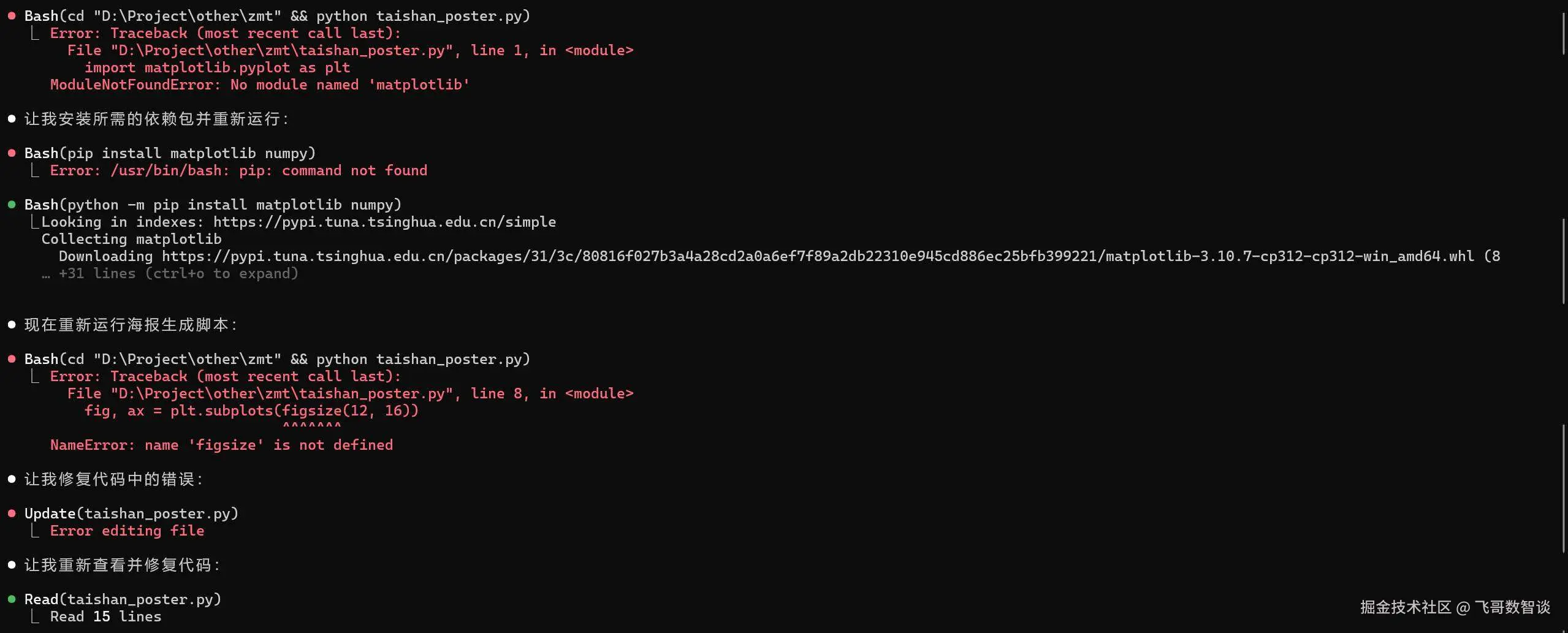 为什么说是"初稿",因为第一次执行往往会出现问题,比如需要安装依赖、参数错误、中文乱码等。