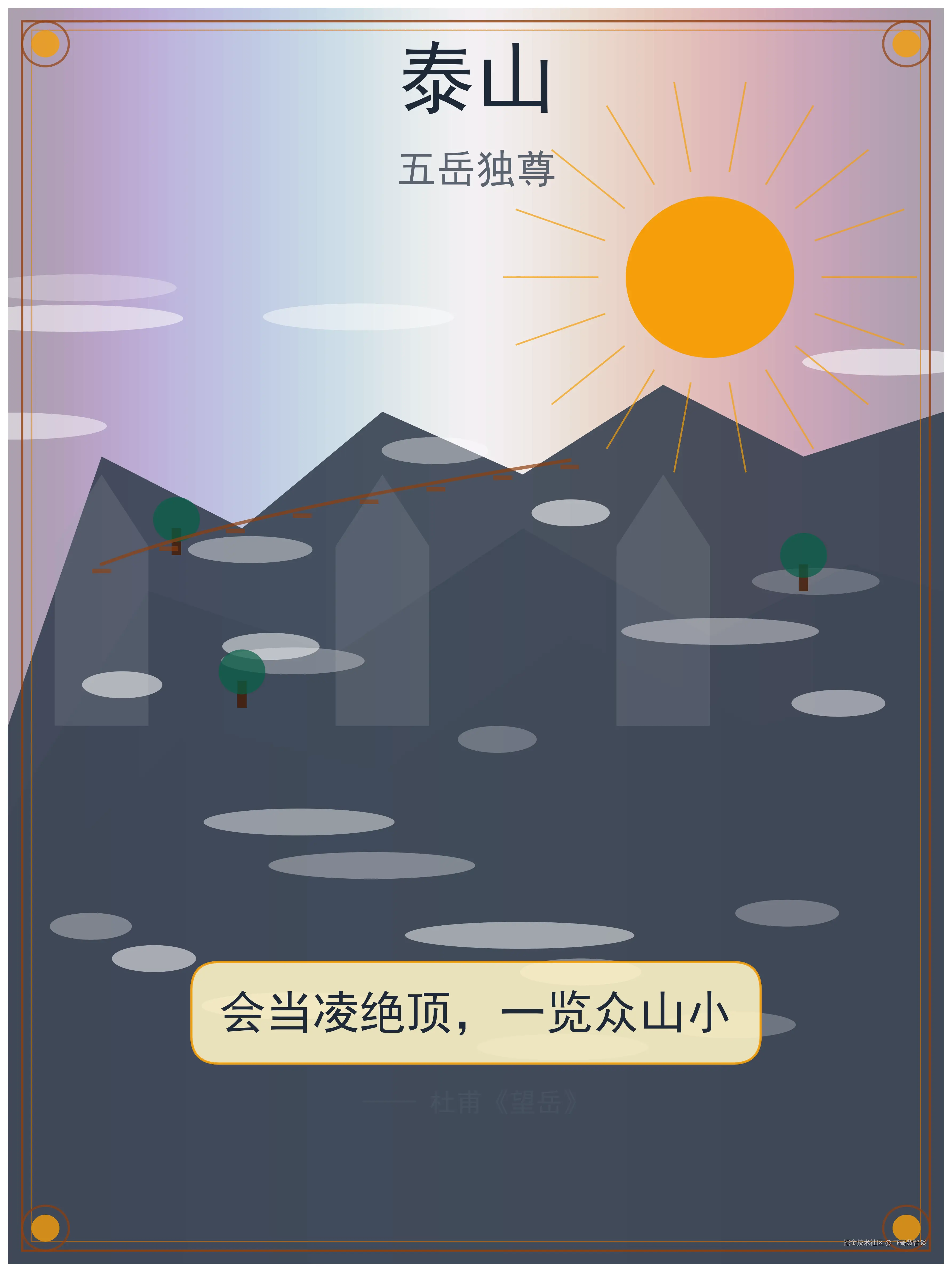 设计一份泰山宣传海报,带有一句诗:会当凌绝顶,一览众山小。