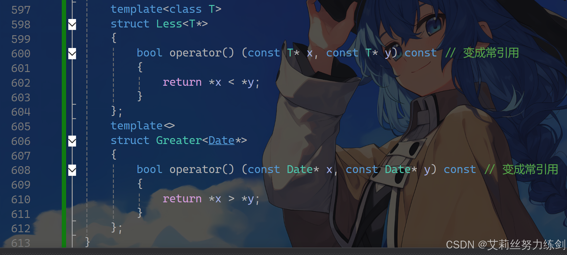 // bool operator() (const Date*& x, const Date*& y) const // 左边的const修饰的是指针