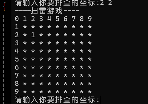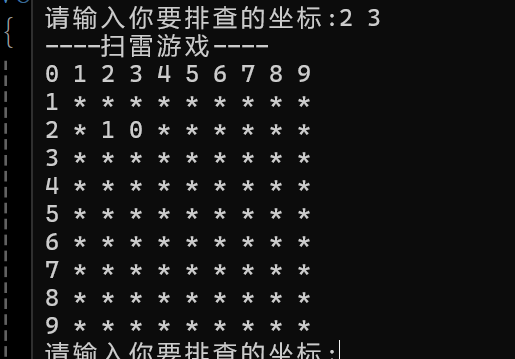 如果这个格子没有被排查,就是一个*号,那么则可以排查这个格子,否则就会让你重新输入