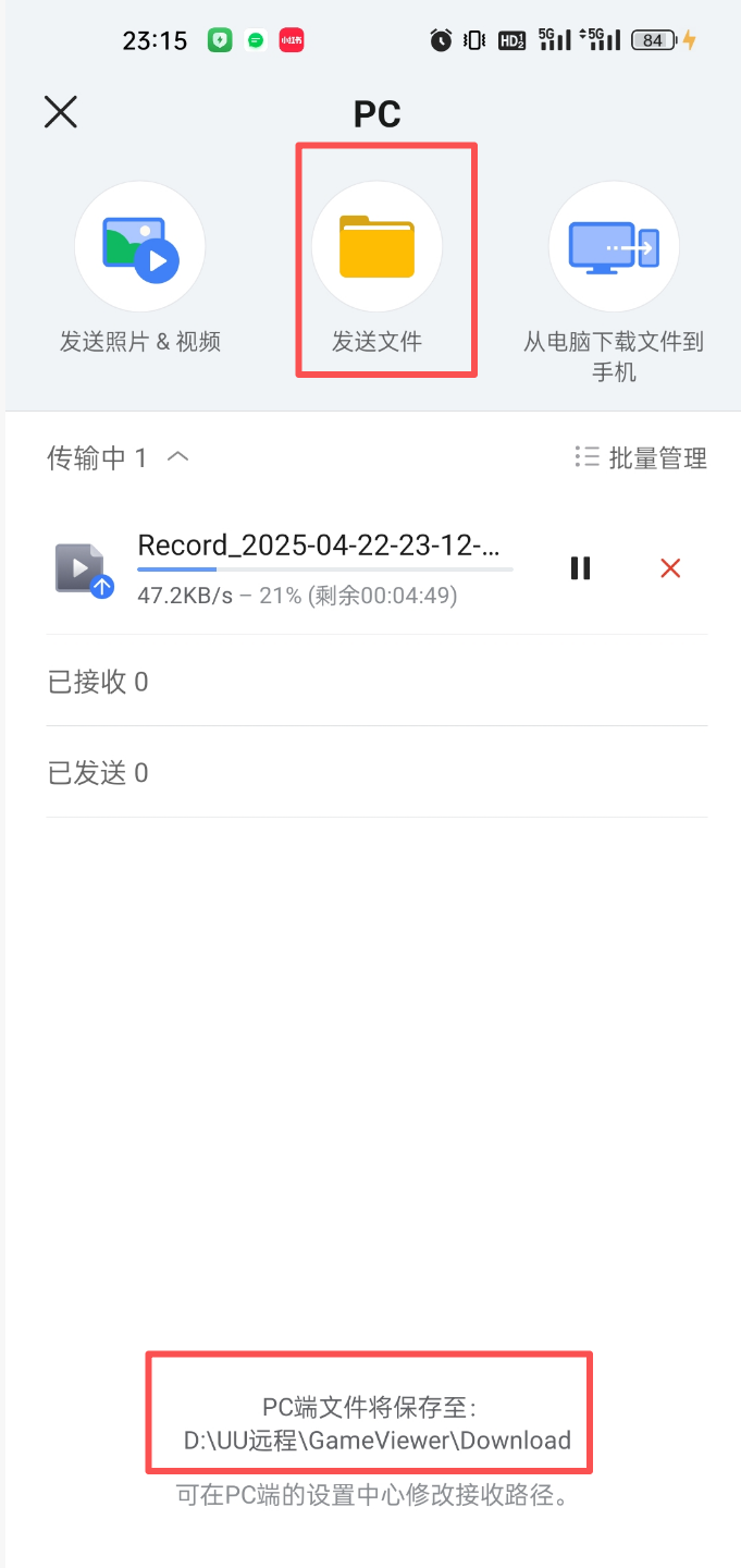 上面是传输过程,并且还可以自定义电脑保存路径。实测没有文件大小的限制和文件格式的限制~
