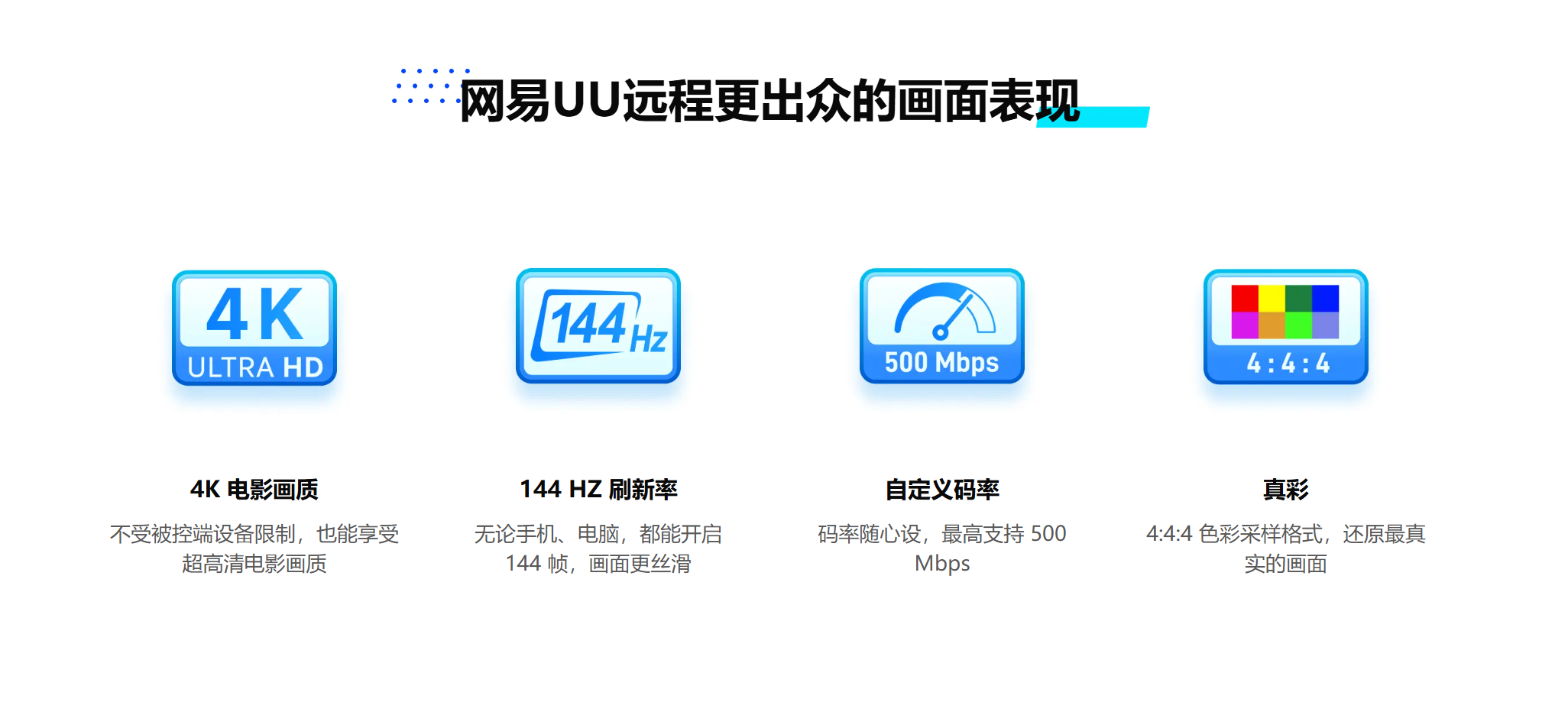 对比竞品:ToDesk免费版仅支持1080P/30Hz,向日葵免费版画质模糊且帧率锁定30fps,UU远程在画质维度形成断层优势。