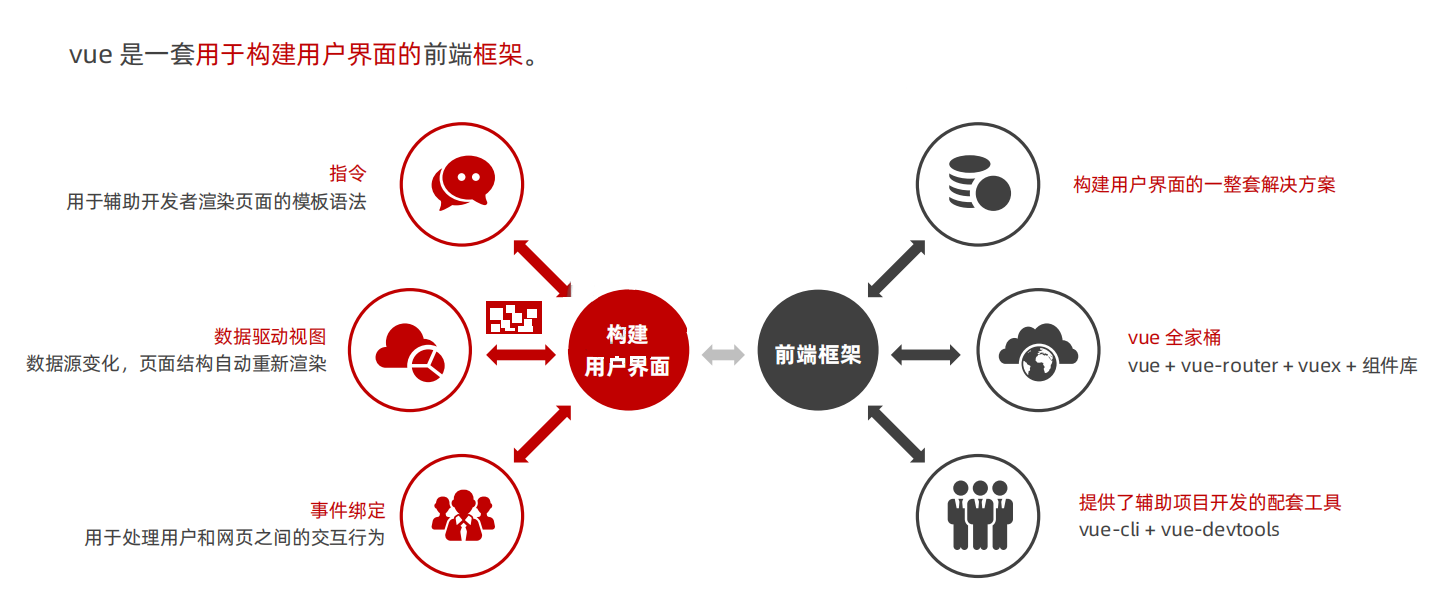 官方给出的概念:**Vue (读音 /vjuː/,类似于 view) 是一套用于构建用户界面的前端框架。**它基于标准 HTML、CSS 和 JavaScript 构建,并提供了一套声明式的、组件化的编程模型,帮助开发者高效地开发用户界面。