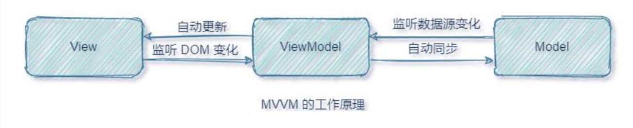 - 当数据源发生变化时,会被 ViewModel 监听到,VM 会根据最新的数据源自动更新页面的结构