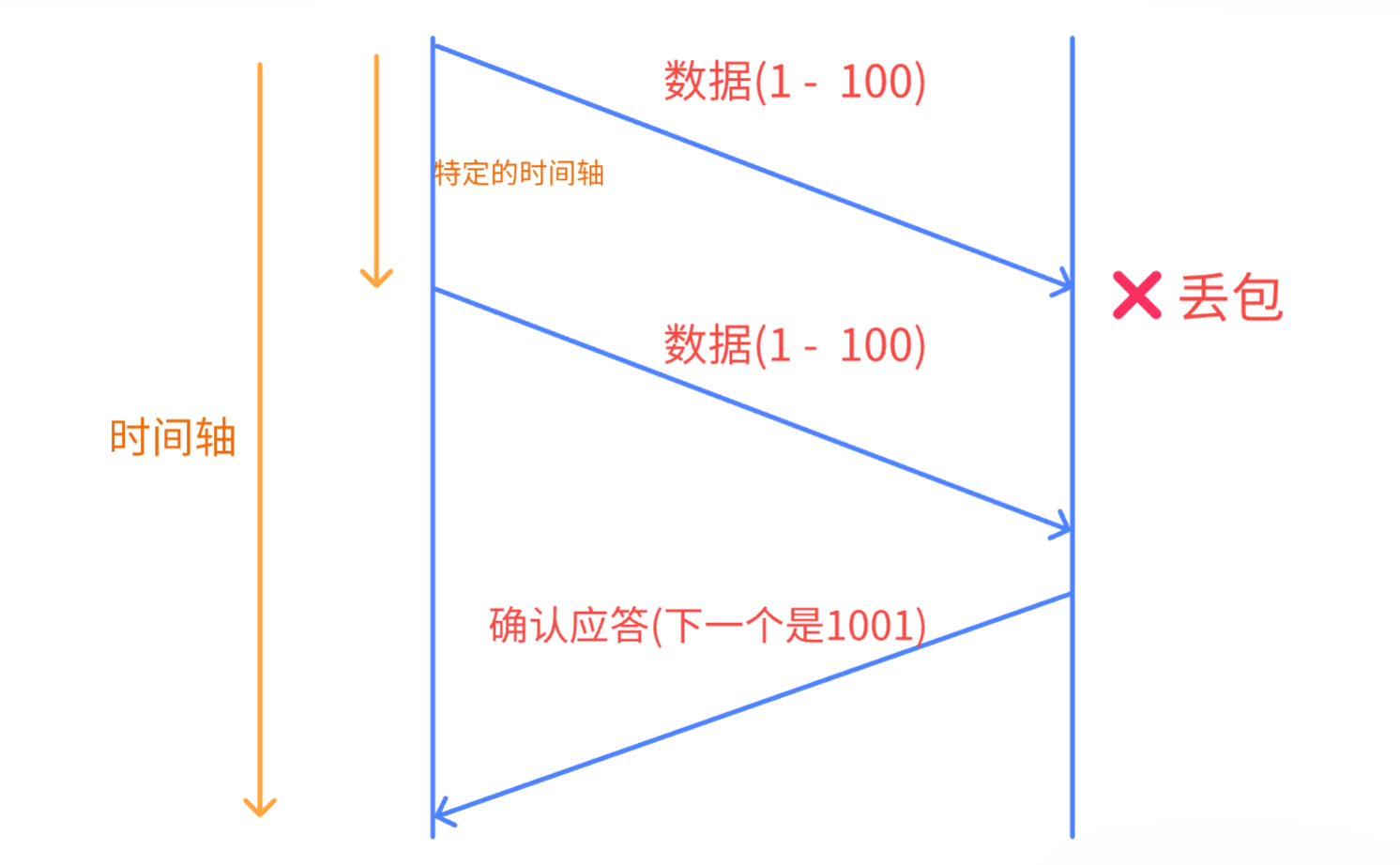 - 主机A发送数据给B之后,可能因为网络拥堵等原因,数据无法到达主机B