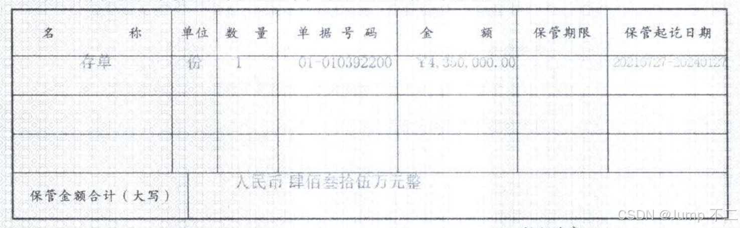 | 保管金额合计(大写) || 人民币肆佰叁拾伍万元整 ||||||