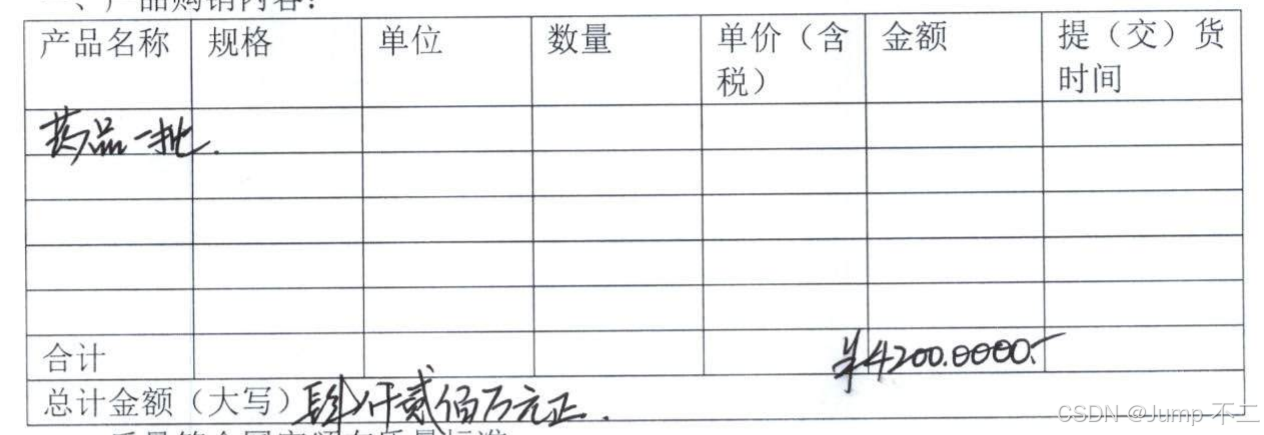 测试结论 :两者均存在手写体识别误差。金额部分均误识别为 "¥4200.0000"(实际为 4200 万元,但是这部分感觉书写有问题,属视觉干扰导致);大写金额部分,PaddleOCR 误将 "肆" 写为 "捌",MinerU 误将 "肆" 识别为 "贰" 但多保留 "正" 字,无本质差距。此轮打平 ,战况更新为2:3(PaddleOCR 落后)。