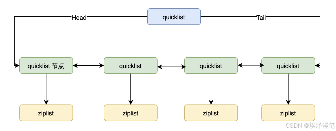 - 兼顾内存与性能:继承了ziplist的紧凑存储特性,同时通过双向链表优化了头尾操作性能;