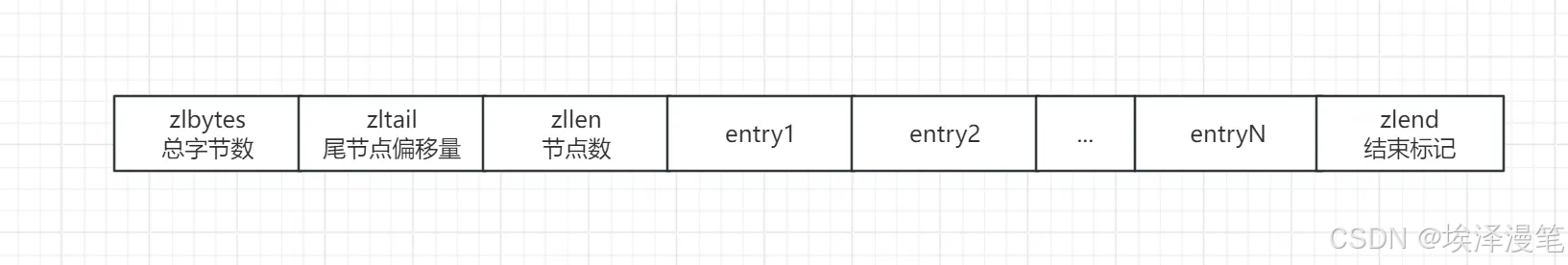 - 整体结构:包含头部信息(存储总长度、元素数量等)、多个entry(元素数据)和尾部标记。