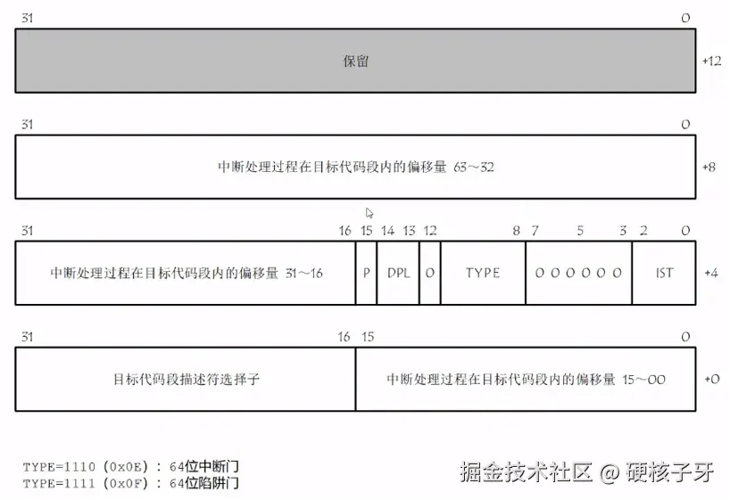 但是这里面每个value有点复杂,是一个中断门描述符。你说这东西没人教怎么学得会?我是觉得操作系统没人教是真的学不会,我自己也是跟老师学才学会的。有人教学起来还算简单,没人教根本无从学起