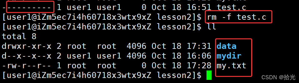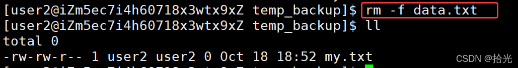 当我们切换到user2用户,可以删除user1 创建的文件data.txt