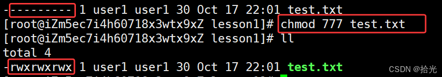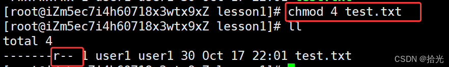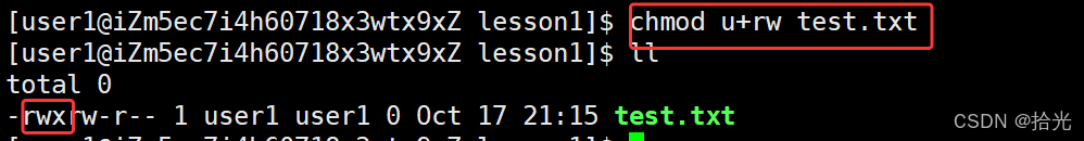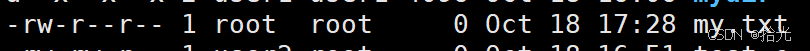 拥有者和所属组均为user1(普通用户),权限均为可读可写,other仅有读权限。