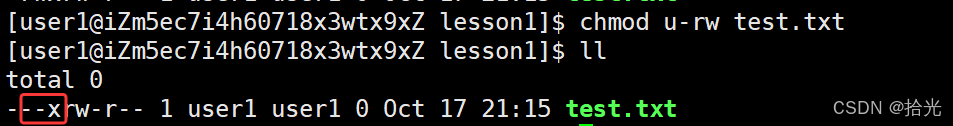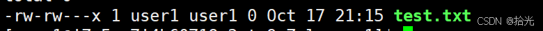 • 修改所属组权限(与上面相同):指令:chmod g+x test.txt