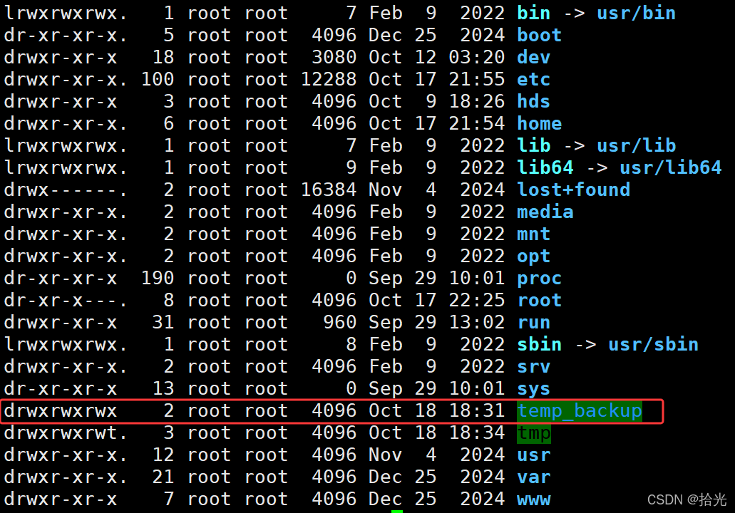 我们在根目录下建立一个temp_backup目录文件并添加所有的权限;