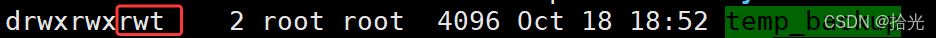 但是,需要注意一点,由于temp_backup目录 other的 w 权限未取消,则任何人都可以删除目录下的文件。所以,引入了粘滞位(t),也是一个权限位,防止非文件的拥有者删除文件。给共享目录文件的other添加粘滞位后,虽然所有的用户都可以在共享文件中创建文件,但是不能删除其他人的文件。