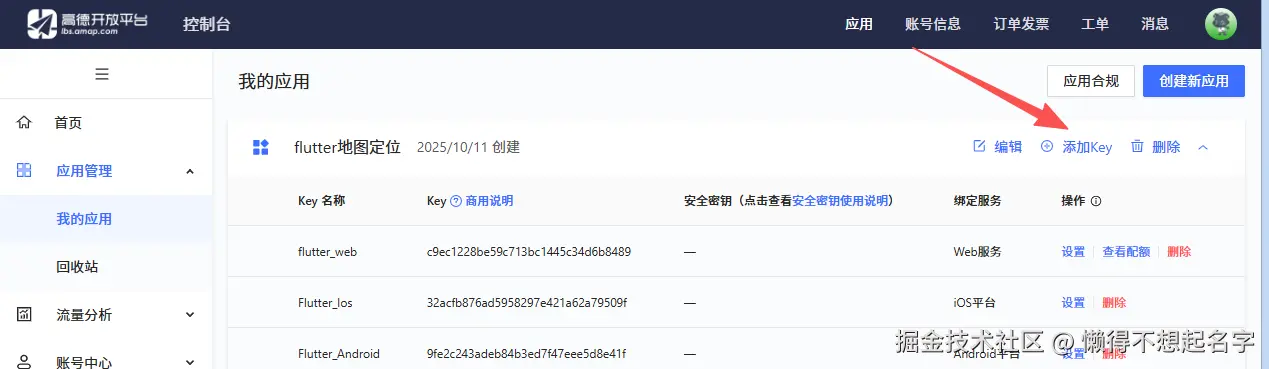 进入高德控制台,创建新应用