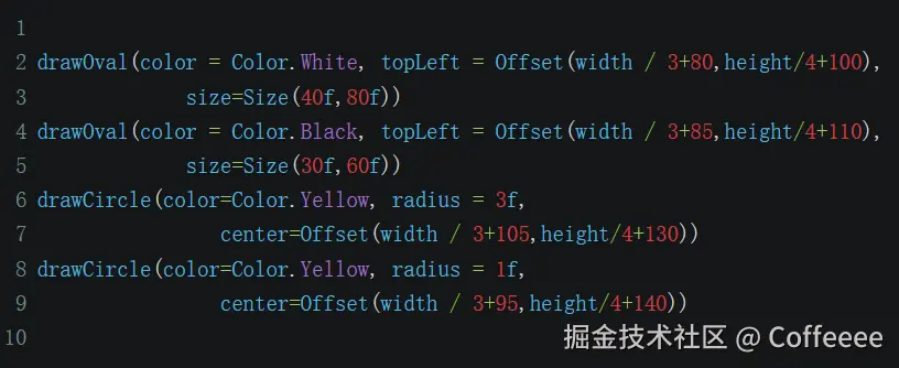 右眼的代码基本同左眼的一致,只是在x坐标上微调了一下,代码如下