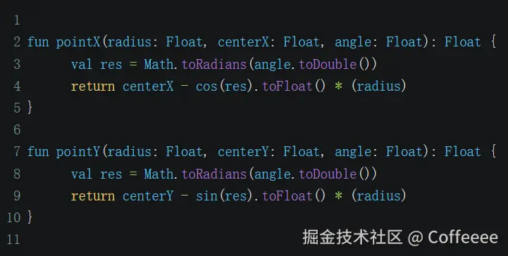 是两个计算圆弧上点的函数,代码如下