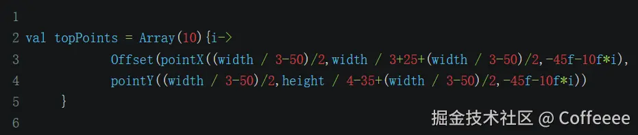 ,也就是也要确定好点的坐标,九个牙齿十个点,也就是在圆弧上找到十等分的点,代码如下