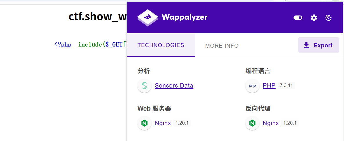 1.判断服务器类型:使用wappalyzer插件,此服务器是nginx