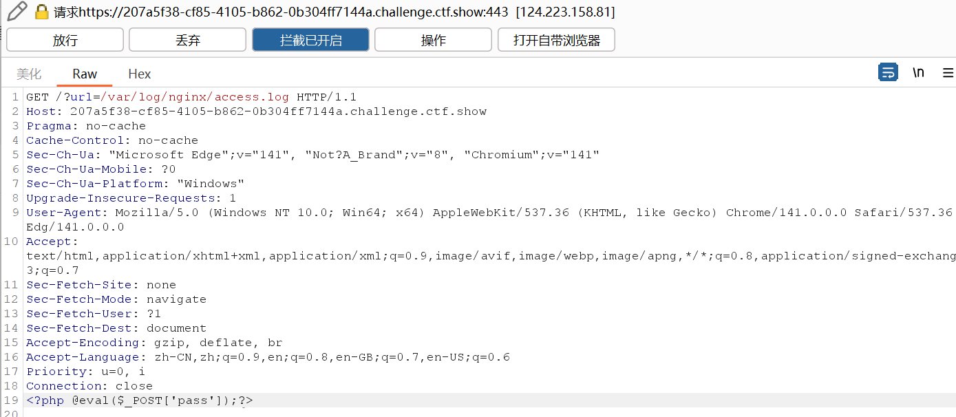 2.读取日志文件发现可以只有/var/log/nginx/access.log可以爆出数据