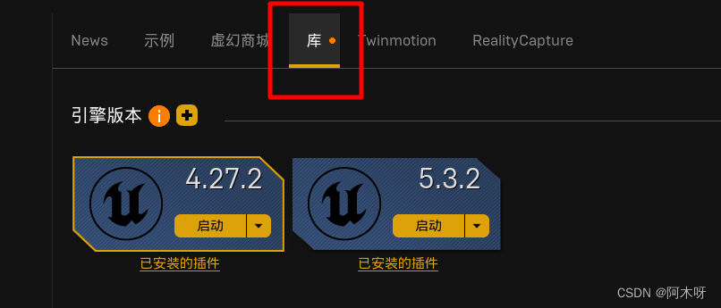 如果你没有安装过虚幻引擎的话,页面左上角会显示"安装"选项。(我这里显示启动,是因为安装过其他的版本)