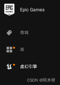 安装好后打开EpicGames程序,找到最左栏的"虚幻引擎"选项。