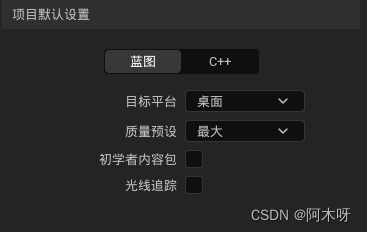 光线追踪,默认不开启,如果需要,可以在创建项目后,找到项目设置-渲染-开启光线追踪,勾选即可。