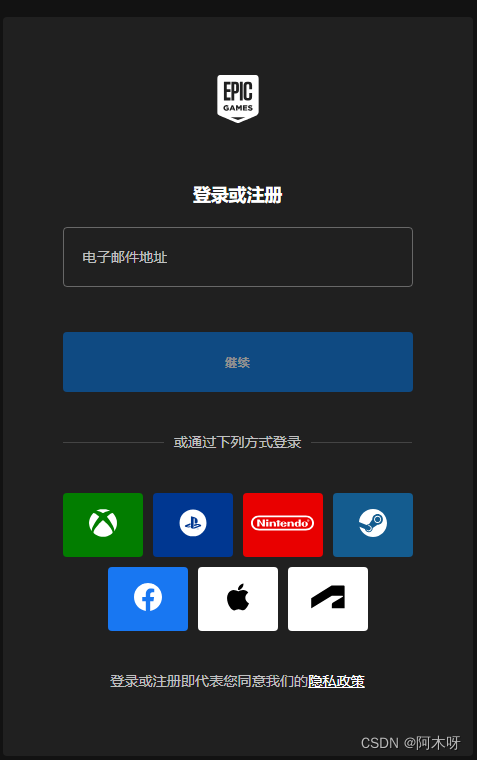 当然在下载之前,你需要先注册一下Epic Games的账号。注册的时候可以用社交媒体账号或邮箱账号。