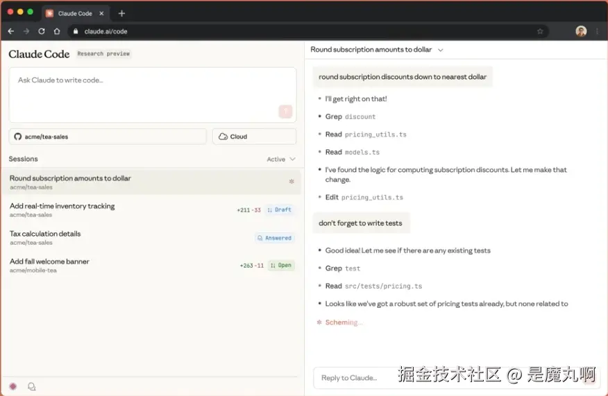 通过在云端运行的 Claude Code,您现在可以从单一界面跨不同仓库并行运行多个任务,并通过自动 PR 创建和清晰的变更摘要更快地交付代码。