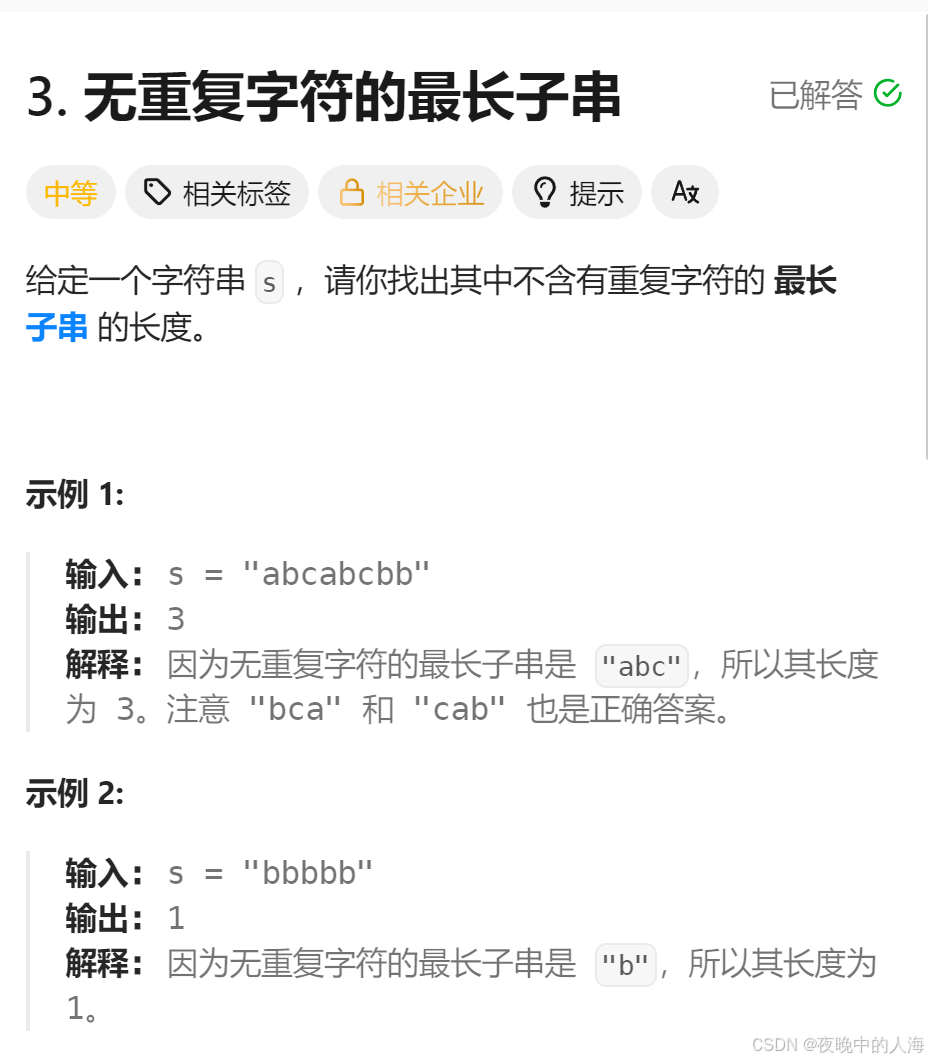 1.暴力枚举,从每一个位置开始向后,看看无重复字符在什么位置,返回长度最长的那个(注:效率低)
