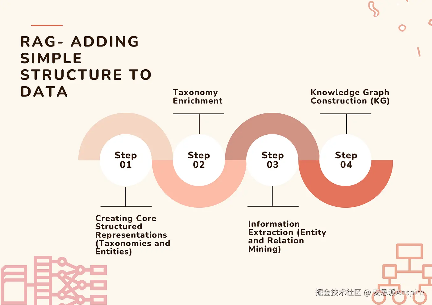 为数据添加结构涉及多个步骤。但它始于分类法构建,随后是分类法的充实、实体提取和知识图谱创建