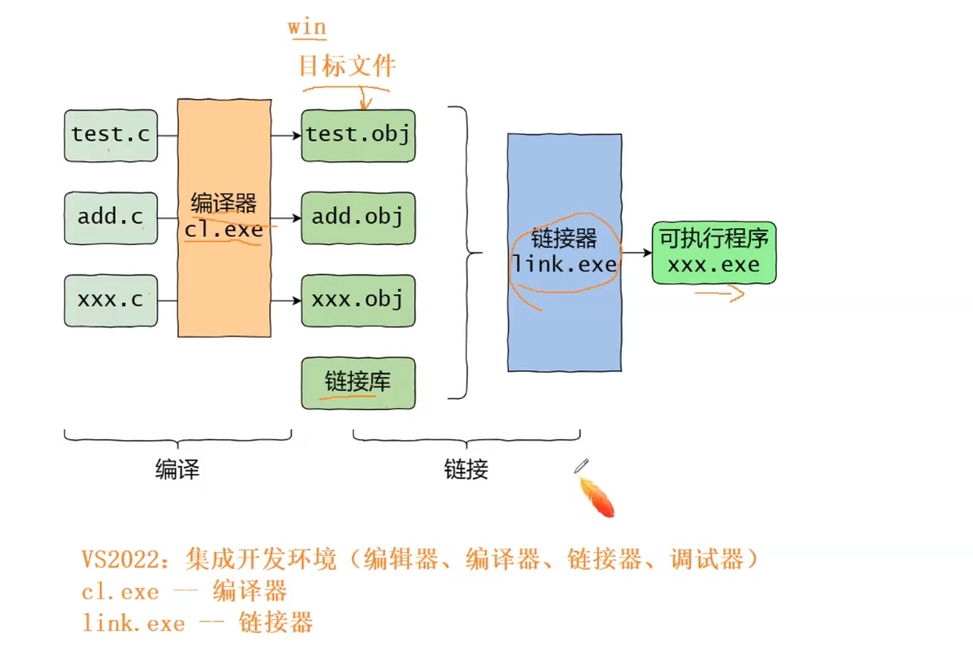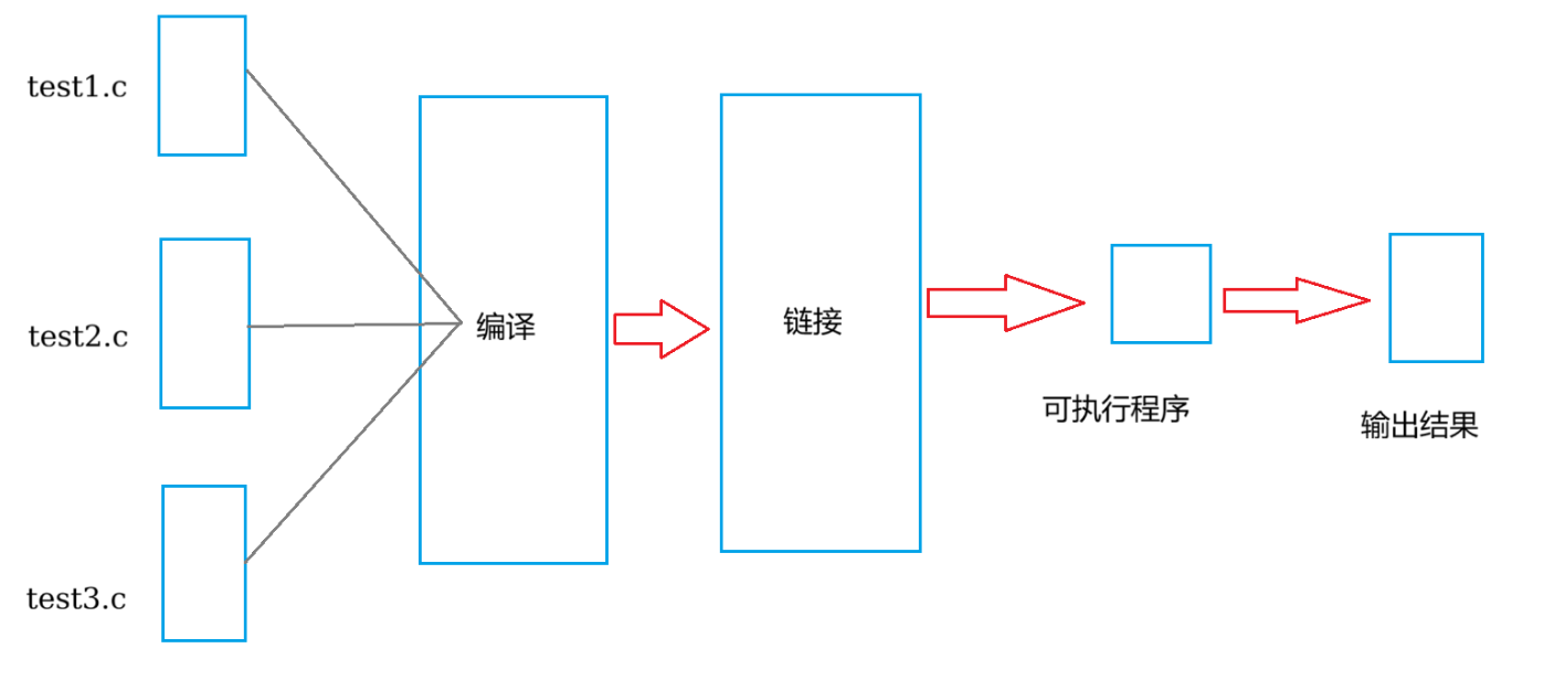 多个.C文件单独经过编译器,编译处理生成对应的目标文件