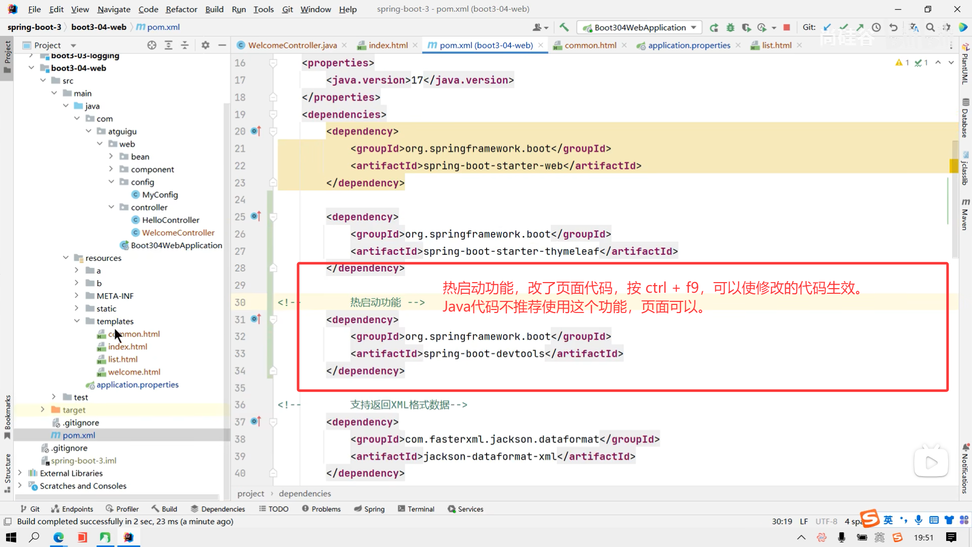 Spring Boot 3零基础教程,WEB 开发 Thymeleaf 总结 热部署 常用配置 笔记44