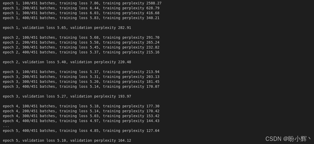 除交叉熵损失外,输出中还包含困惑度 (perplexity