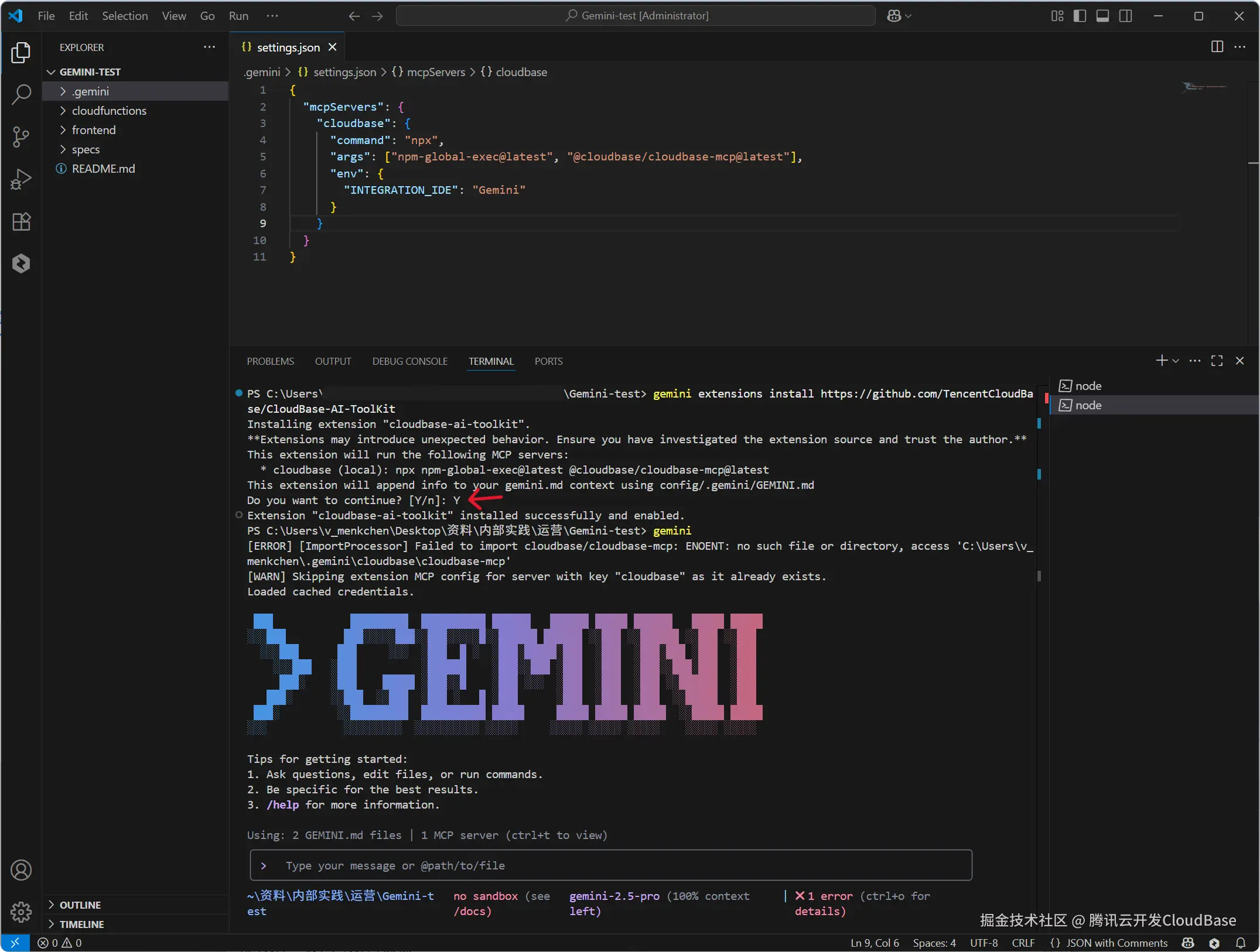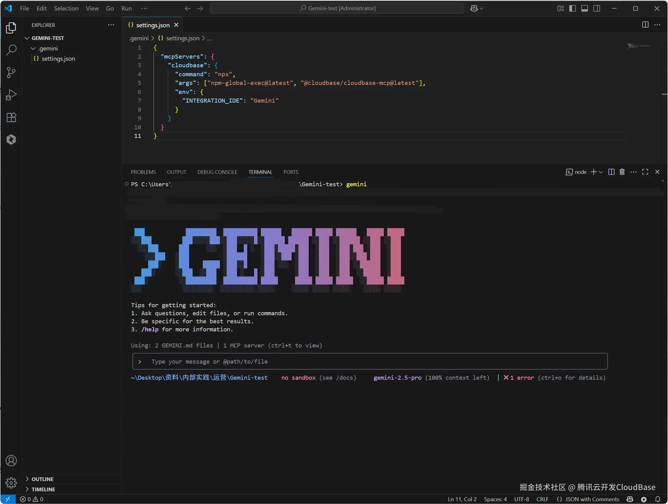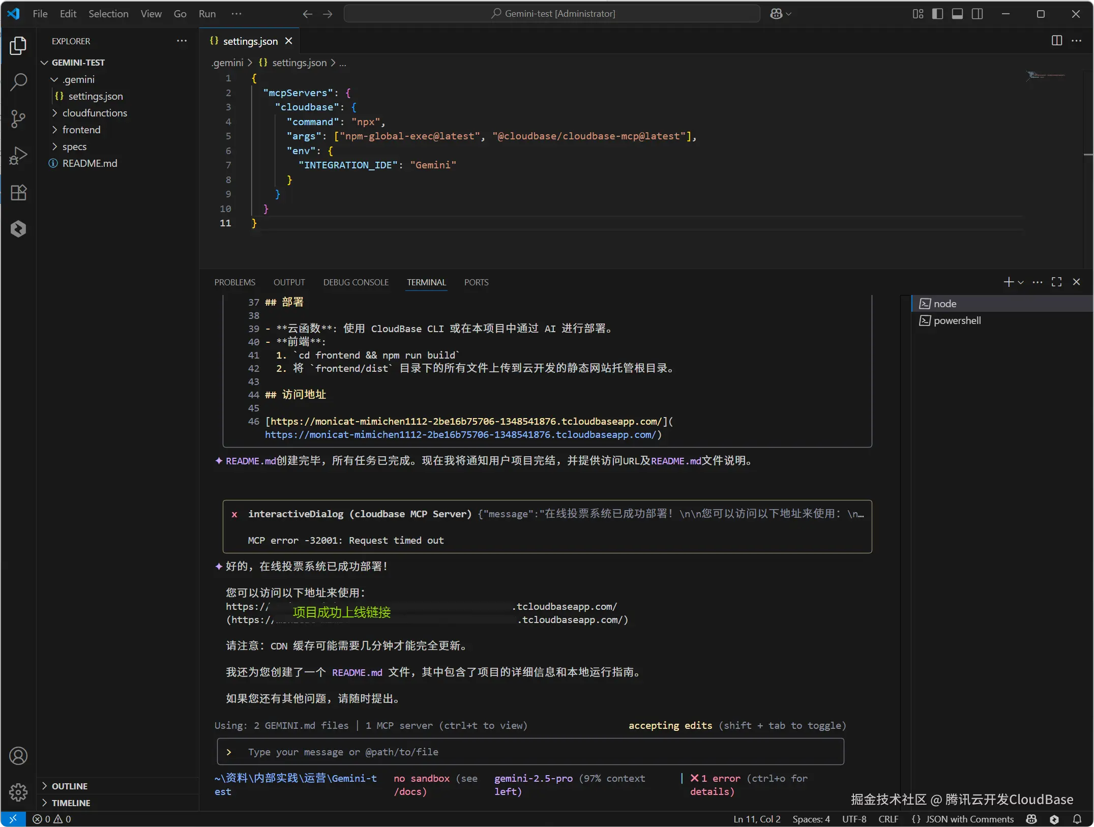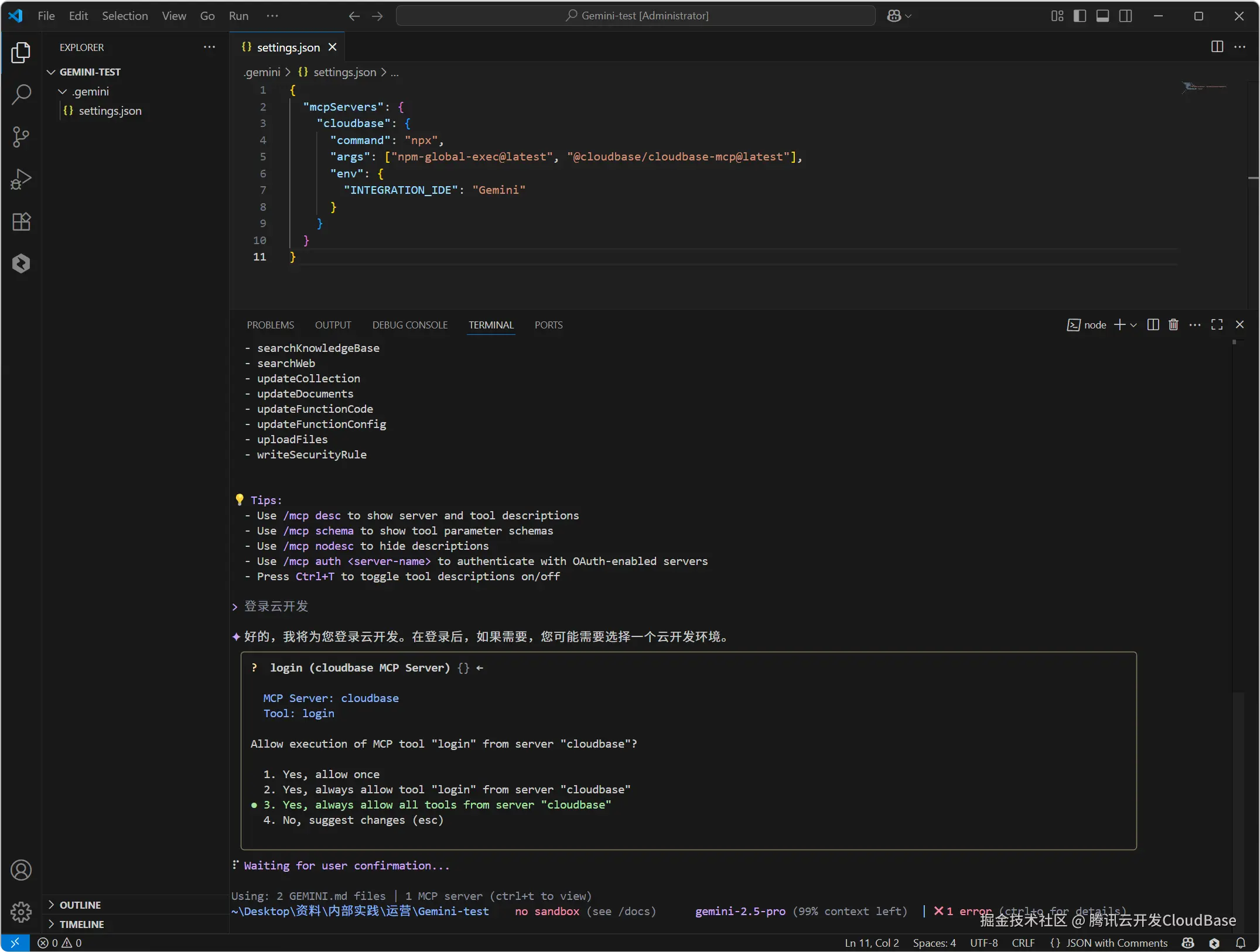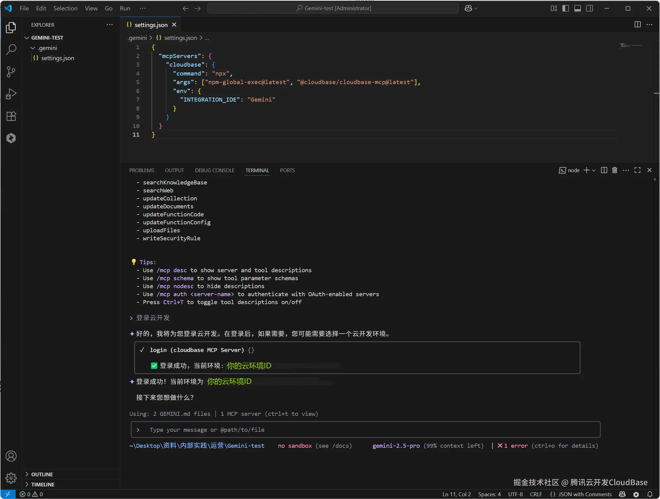 ✨按照本教程将腾讯云开发 CloudBase 的能力注入Gemini CLI后,使用Gemini CLI也可以操作CloudBase的开发、部署和运维资源了!