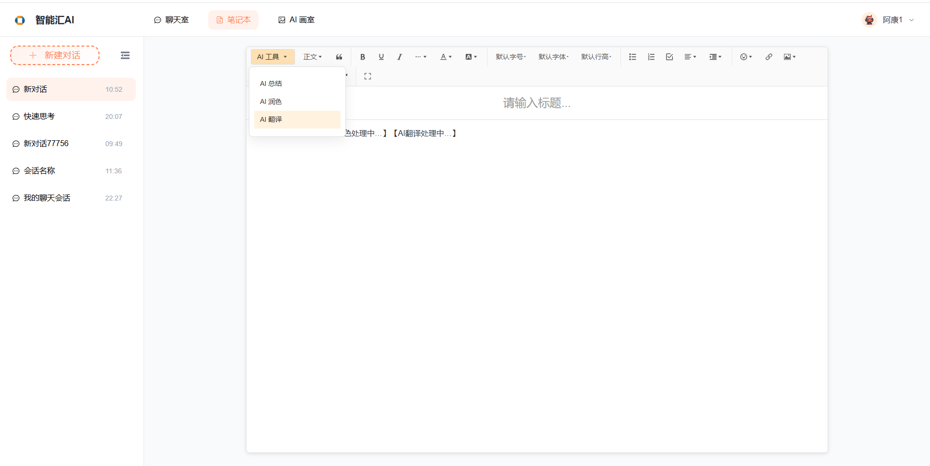 调用后端 AI 服务。 - 结果回写:将 AI 返回的结果插入到编辑器中(并替换掉之前插入的"处理中"占位文本)。