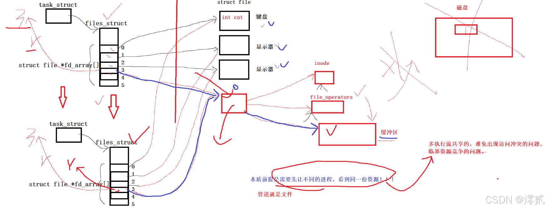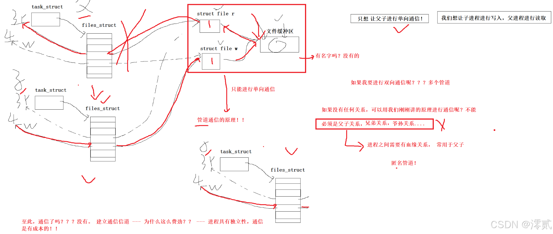 为属性,内容放在缓冲区里,子进程自然而然会复制父进程的文件描述符表,此时他们看见的是同一份资源,这里要是加以处理就能形成一方读一方写的通信,那么此时就能推出如果想要进行通信就必须让不同进程看见同一份资源