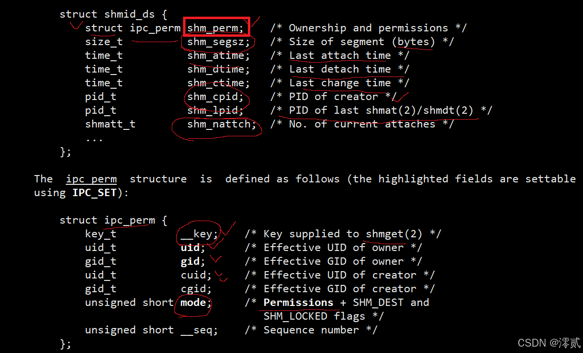 buf:指向⼀个保存着共享内存的模式状态和访问权限的数据结构