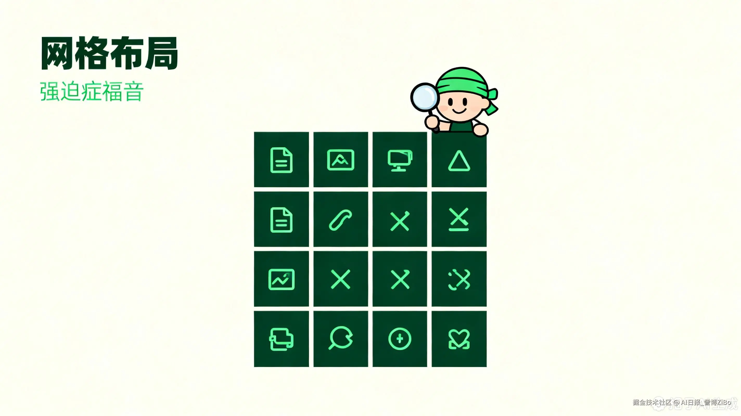 - 幽默点:这是一种"强迫症福音"布局,每个元素都待在自己的小方格里,整整齐齐,赏心悦目。