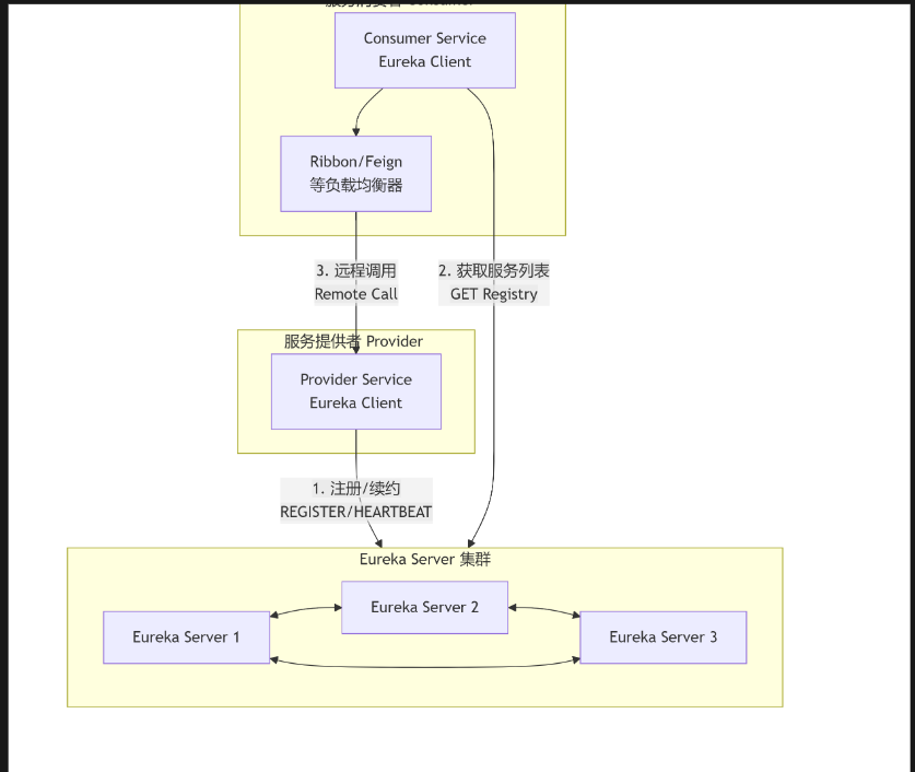 下图清晰地展示了 Eureka 的核心架构和组件交互: