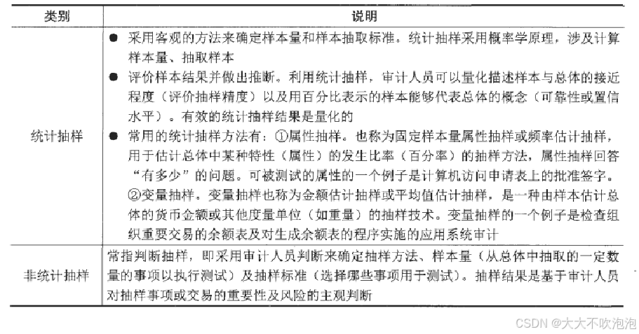 审计抽样是指审计人员在实施审计程序时,从审计对象总体中选取一定数量的样本进行测试。