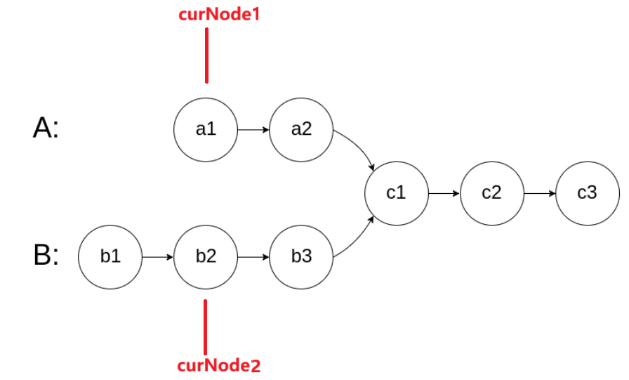 ListNode* curNode1 = headA, *curNode2 = headB;