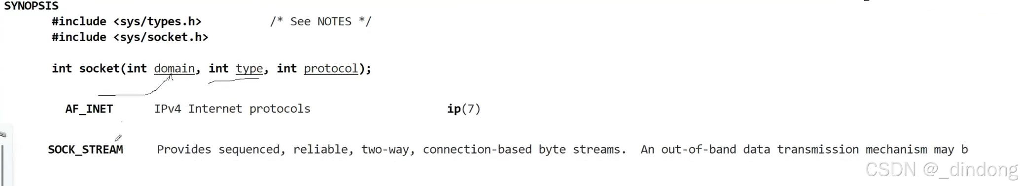 协议家族选择AF_INET,因为我们要进行的是网络通信。