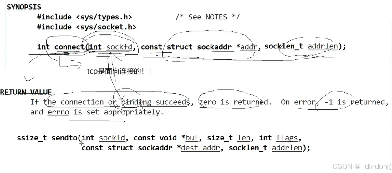 连接或绑定成功返回0,连接失败返回-1,同时错误码会被设置。
